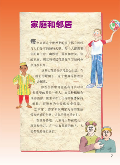 这本书也有很多你可以在家完成的活动。找找彩色球图案上的“试一试!”。它指示的活动提供了更多地了解我们是谁的方法。例如,你可以制作一些以前从没吃过的食物,例如来自意大利的蒜末烤面包或者中东地区的椰枣糕(date bar)。你可以玩来自非洲的德拉和满卡拉游戏。或者你可以学说用许多种语言说“你好”。