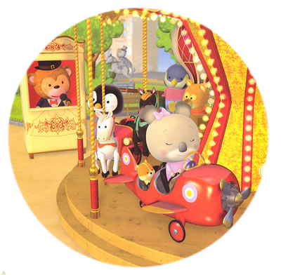 放学回家的路上,考拉宝宝和小仓鼠皮皮路过旋转木马。哈哈,妈妈同意让他们坐一圈。两个小家伙能不能抓到绒球呢?