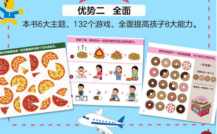 这是一套日本孩子都爱玩的智力开发游戏书。 本书全6册,每册1个主题。 从认知图形与空间、熟悉日常的生活与自然 到了解数字与数学思维等等。 每个游戏从不同的角度出发,搭配可爱的形象和有趣的情节, 帮助孩子活跃思维,激发想象。