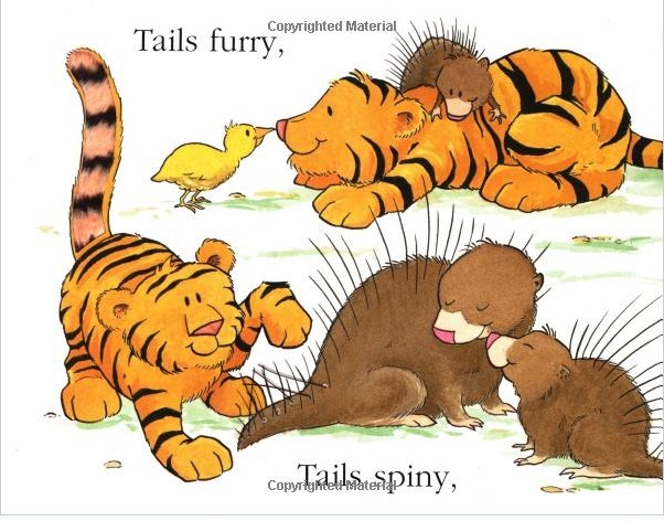 The most fascinating part of an animal, in the minds of many young children, is the tail. Not only do kids lack such appendages, they've been told that, as tempting as they are to yank on, tails are not to be touched. Fortunately, this charming, texture-rich board book (with patches of real fake fur!) is the next best thing. A vast menagerie of cartoonish critters play and scamper around the pages of Matthew Van Fleet's Tails sporting tails of all types: bumpy alligator tails, fuzzy tiger tails, and even slightly stinky scratch-and-sniff skunk tails. Children can pull the tabs to make some of the tails wag or swish. The story line is minimal, as animals lounge about playing with one another and generally having good-natured fun. Catchy rhyming verse ("Tails fluffy, tails stringy, scaled tails strong and clingy. Tails long. Tails stumpy, pulling tails makes snoozers grumpy") keeps the action moving along and encourages young readers eager to turn the page. Shoddy construction can often spell doom for lift-the-flap and touch-and-feel children's books but Tails is every bit as well-designed as it is well-written and illustrated. (Preschool) --John Moe