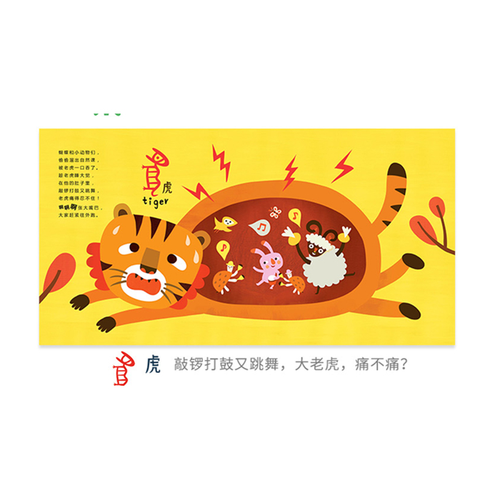 《字然课》绘本,选取了具有代表性、与孩子生活贴近的24个甲骨文,围绕这24个字,以轻快、韵味的文字,为孩子写下节奏鲜活,寓含环保启发性的小诗。每个小诗都配有美丽的插图,颜色丰富,画风可爱,给孩子带来美丽活泼的“字然课”的大自然教室。为了增加互动性和趣味性,《字然课》绘本还配套制作了精美的可爱动画,孩子们可以边看绘本边玩动画,开开心心学汉字。