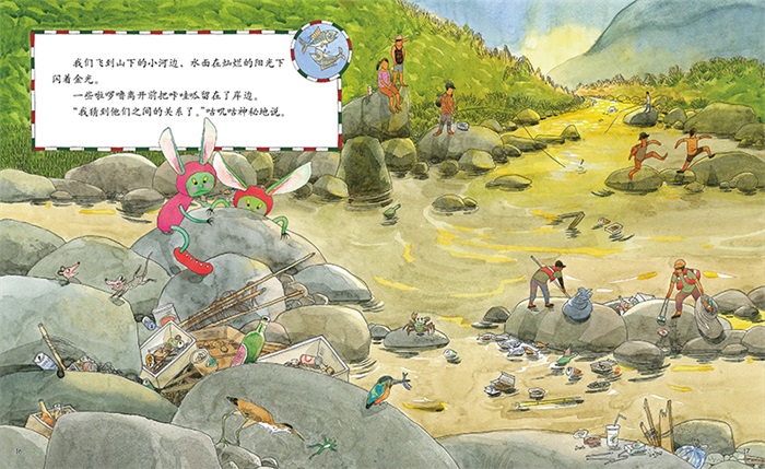 来自“葛里罗星”的两个小外星人降落在地球时,发现周围是一个堆满垃圾的地方,公园、电影院、小河等到处都是垃圾,难道“垃圾”是地球的居民吗?两个小外星人决定去拜访垃圾国王,结果因为“人”乱扔烟头而引发了垃圾山大火……返航的路上,百思不得其解的小外星人画下了心目中的“未来地球图”。 故事以幽默的文字和富有想象力的图画,引导孩子去思考关于乱丢垃圾的现象。孩子将学会思考如何对待手中的垃圾,养成良好的生活习惯,培养爱护环境、关爱地球的意识,成为一个有环保责任感的人。