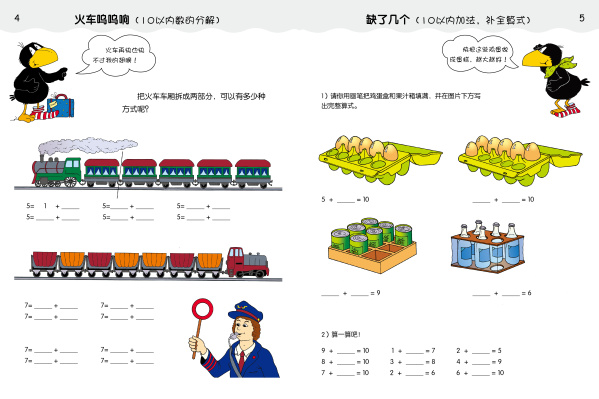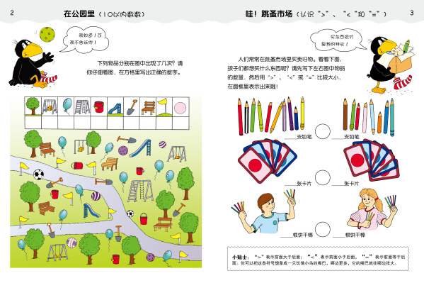 12大主题,带给孩子全面的常识启蒙。认识自然与社会,是孩子成长的必需。本书将购物、农场、动物、工作等常识巧妙融入题目与画面中,让孩子在做题过程中了解日常的薯条与面包来自于何处,钱的用途及取钱设施,怎样过马路才是最安全的,不同的职业分别对应着怎样的生活,等等。