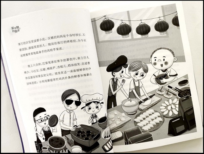 三个中国男孩——冰棍儿、糖葫芦和奶油泡芙——也打算回各自在中国的家,因为一个星期后就是中国的春节了。他们来自不同的地方,每个人的爸爸妈妈、爷爷奶奶、叔叔阿姨们,都在等着他们回家。他们三个也多少都有点儿激动。“我终于可以呼噜呼噜地吃我妈做的炸酱面,再喝碗热滚滚的小吊梨汤了。”糖葫芦边说边呵呵笑着,稀疏的头发贴在了脑门儿上。奶油泡芙戴着墨镜,有点儿得意地说:“愚园路的富春小笼,南京西路王家沙点心店的鲜肉小馄饨,还有哈尔滨食品厂夹着花生酱的西番尼,你们听过吗?”冰棍儿推了推黑框眼镜,脑子里像放幻灯片一样地闪出一盘油汪汪的地三鲜、一锅冒着热气的猪肉炖粉条,还有炸得焦脆喷香、沾着浓稠的酸甜酱汁的锅包肉。然后他又推了推眼镜,面无表情地咽了咽口水。
