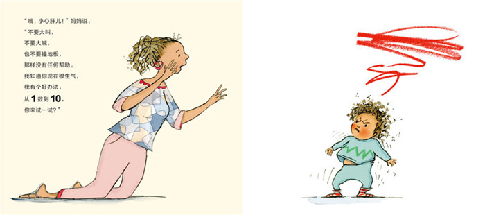 书中妈妈共出场7个页面,一派智慧优雅、从容淡定,自己不被孩子的情绪左右而先抓狂。