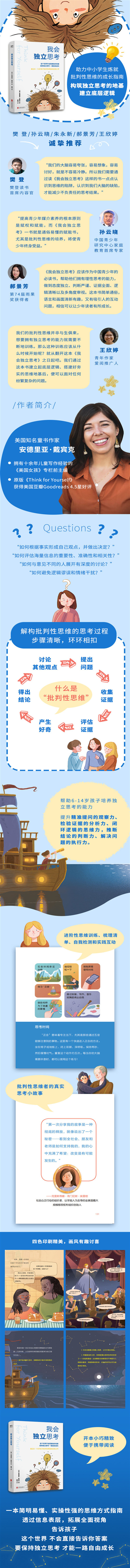 我们的大脑容易夸张,容易想象,容易讨好,就是不容易冷静。所以我们需要通过读《我会独立思考》这样的书一点点认识到思维的陷阱,认识到我们大脑的缺陷,才能减少不负责任的思考结果。 ——樊登,樊登读书首席内容官