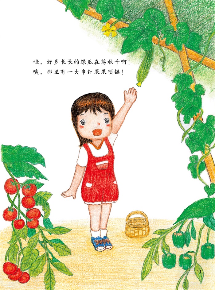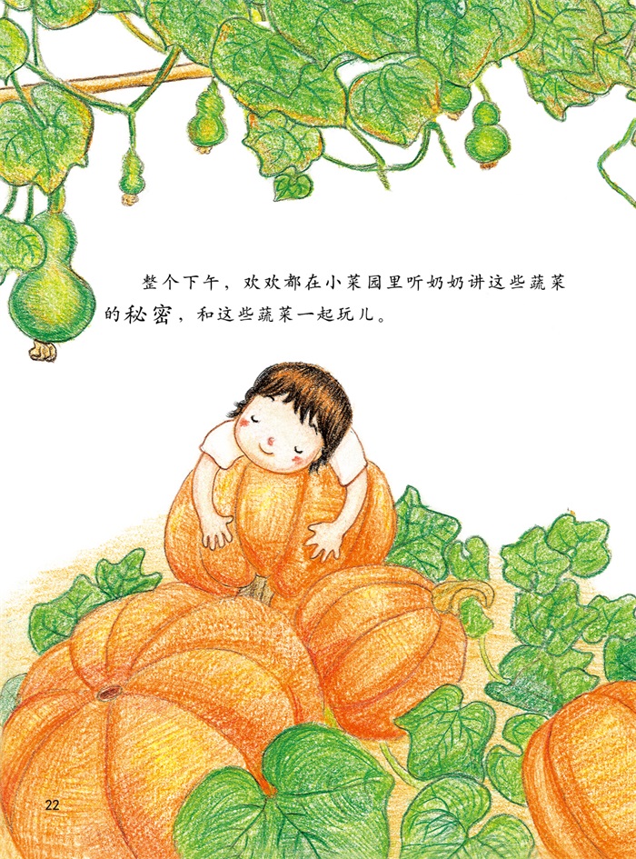 《蔬菜的秘密》讲述的是一个很有代表性的小女孩欢欢的故事,她只爱吃肉,不爱吃鸡蛋,不爱吃蔬菜。直到有一次,她去了乡下奶奶家。在奶奶的小菜园里,奶奶用各种各样的想象来引起欢欢对蔬菜的兴趣:丝瓜的种子是由小鸟从外星衔来的,西红柿来自地球的背面,辣椒是帮蚂蚁照明的小灯笼,豆子会变成天上的星星……这一切对欢欢来说都是那么新奇和充满浪漫,她忍不住爱上了这些有秘密的蔬菜,想要好好尝一尝,逐渐改掉挑食的坏习惯。