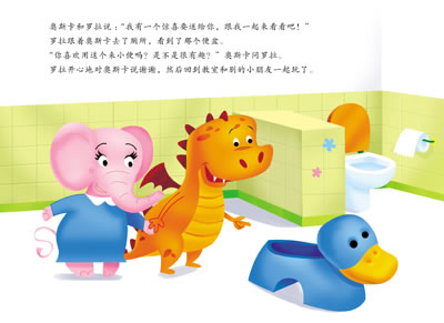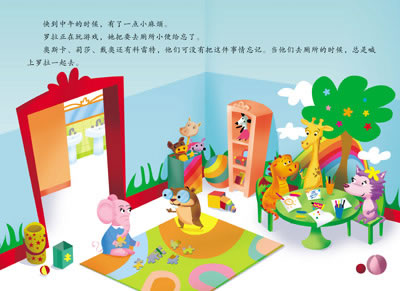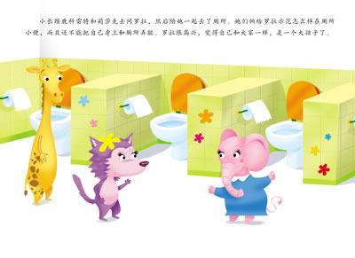 今天,小象罗拉很开心,因为她不再穿尿布了。但是大家一起做游戏,玩得开心的她忘记了要去厕所尿尿,还好我想到了一个办法来帮助她……