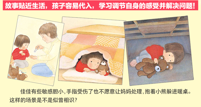 1.故事情节贴近孩子的生活,让孩子有很强的代入感,学习调节自身的感受并解决问题!
