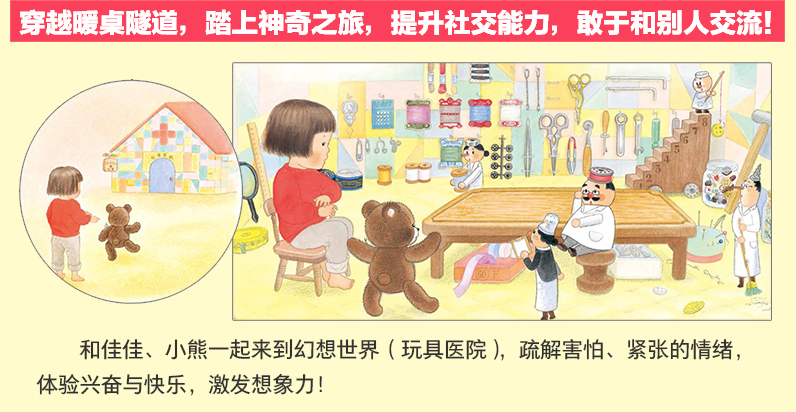 这本图画书的故事情节贴近孩子的生活,作者丸山绫子用日常生活中常见的暖桌,搭建起沟通想象与现实世界的隧道,让孩子自由出入其中——通过想象来疏解害怕、紧张的情绪,回归现实感受母爱,获取成长的力量!