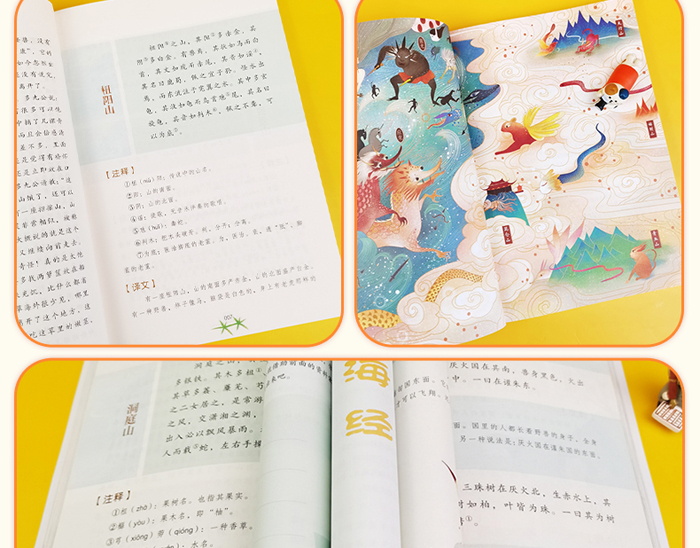 《山海经》成书年代和作者已不可考,现存十八卷,分为《山经》和《海经》两大部分。《山经》主要记载山川河流、动植物、矿物等的分布情况。《海经》主要记载各地的奇异风貌、神奇事物等。《山海经》对研究我国古代神话、地理、历史、民俗、文化等内容,均有重要的参考价值。本书将以原文、注释、译文、及故事的形式将《山海经》的部分内容展现出来。