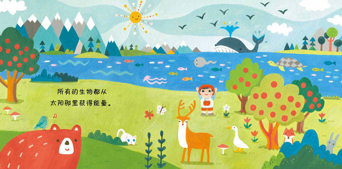 热力学告诉宝宝能量是如何流动的,从阳光、小树、苹果,再到宝宝!所有的生物都从太阳那里获得能量。
