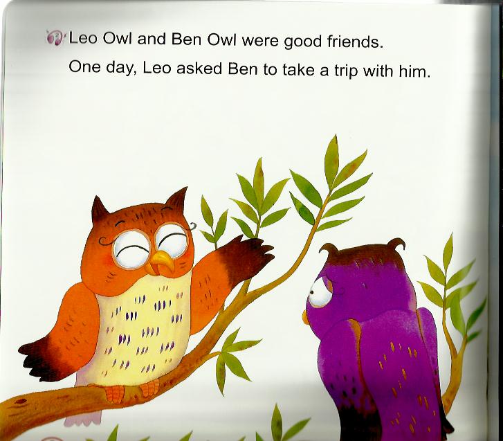小朋友,四月真是一个春暖花开的季节,也是一个适合旅行的月份,故事里的里欧约了班恩一起去旅行,并发生了些有趣的事!在阅读故事前先和爸爸妈妈讨论封面里的两只猫头鹰有什么不同。它们给你什么感觉?两只猫头鹰的表情与个性看起来一样吗? 看完故事后,想想看,你觉得自己比较像里欧,还是班恩?
