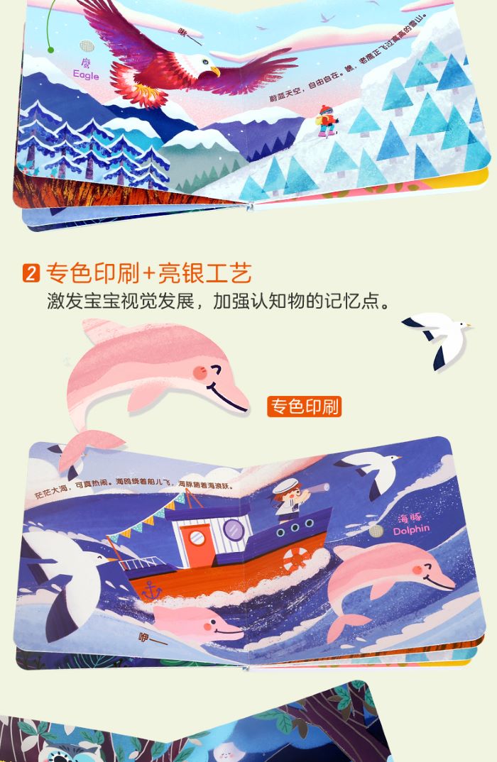 专色印刷、亮银工艺和香味贴片,刺激宝宝视觉和嗅觉发展;