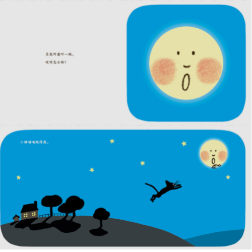 夜深了,天上的月亮静静的,不过,它其实也在看着小宝宝呢!小狗、小鸟都呼呼地睡着了,而且,你看,睡着了的小狗和小鸟都不是一个人,都不孤单呢!还有小动物没睡着呢,它是想摸摸月亮,或是想调到月亮上看看是什么样子吧?静静的夜晚,小宝宝也美美得睡着了。