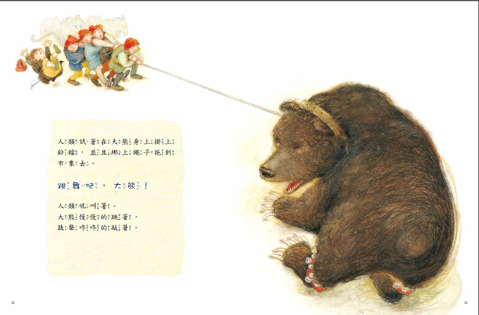 大熊必須不停的跳舞,一刻也不能休息,他好想休息,好想念山林,他決定勇敢的離開。