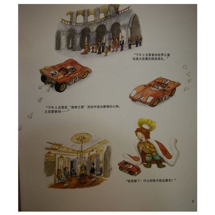 《旅行童话集·GOGO世界旅行:小王子的赛车派对》中的文字虽然较少,但内容精练,其用简短的文字构筑出一个个跌宕起伏的故事。《旅行童话集·GOGO世界旅行:小王子的赛车派对》的文字都是经过作者仔细推敲,再三锤炼,使整体风格风趣活泼,符合小朋友们的语言习惯。更值得一说的是书中的插图,本套绘本用插图讲故事的方式,把原本属于高雅层次、仅供少数人欣赏的绘画艺术带到了大众面前,尤其是小朋友们的面前。这些图都是插画家们精心手绘,讲究绘画的技法和风格,讲究图的精美和细节,是一种独创性的艺术。在这套绘本中要读的绝不仅仅是文字,而是要从图画中读出故事,进而欣赏绘画。所以这套优质绘本中高质量的插图与文字,对培养小朋友的认知能力、观察能力、沟通能力、想象力、创造力,还有情感发育等等,都有着难以估量的潜移默化的影响。