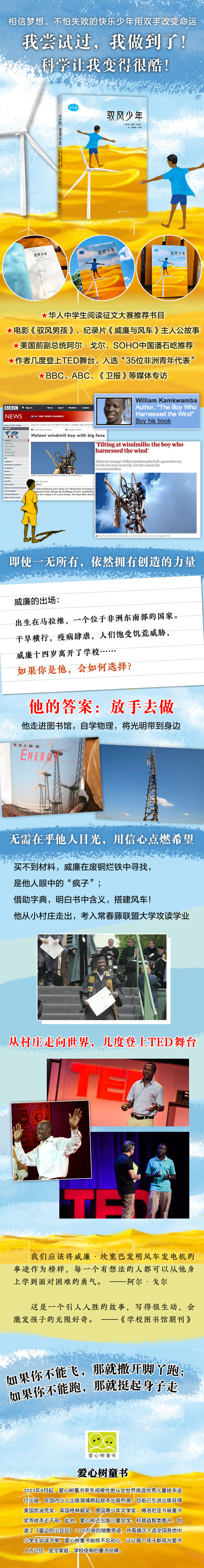 ★我尝试过,我做到了!科学让我变得很酷! ★在怪兽与巫师一起跳舞的奇幻大陆上,相信梦想、不怕失败的快乐少年用双手改变命运 ★美国前副总统阿尔·戈尔、SOHO中国潘石屹诚挚推荐 ★媒体特别专访,入选“35位非洲青年代表”,受邀TED论坛发表演说 ★华人中学生阅读征文大赛