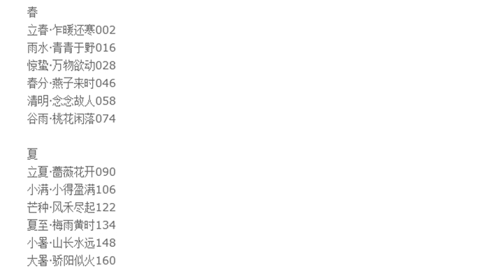 2016年11月30日二十四节气正式列入联合国教科文组织人类非物质文化遗产代表名录。本书按照一年中二十四节气的时间顺序,将详实的内容配以精美图片,细细打磨,将与每个节气有关的传说、民俗等知识娓娓道来,从二十四节气这农耕文明的古老智慧中,吸取当下生活的感悟和启示。