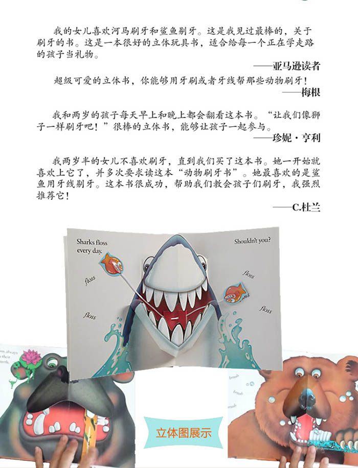 超级可爱的立体书,你能够用牙刷或者牙线帮那些动物刷牙!