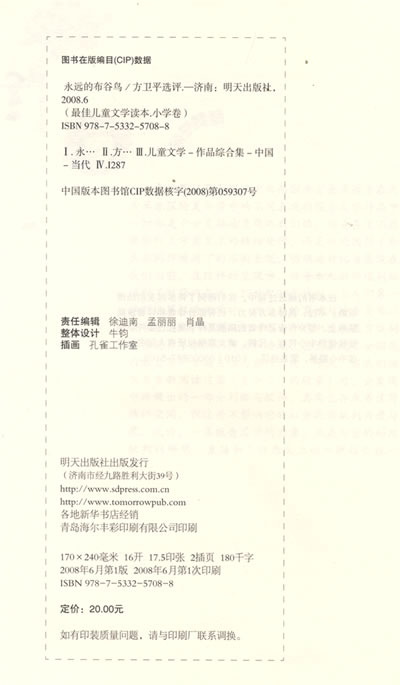 《最佳儿童文学读本》由《树叶的香味》、《永远的布谷鸟》、《为我唱首歌吧》三个分册组成,是选评者方卫平教授以多年的儿童文学研究、教学和阅读推广经验,为广大儿童文学读者所选编的一套中外最佳儿童文学作品集。读本主要采取按主题组合单元的结构方式,各单元的阅读导语及作品后用于指导具体阅读的“牵手阅读”文字,均由方卫平执笔。读本插图温馨雅致,素朴大方,又为作品阅读增添了别样的意趣。