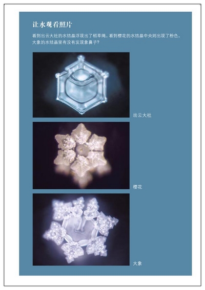 “爱?感谢”结成了最美好的水结晶,教人懂得要毫不吝啬、源源不断地将“爱”给予对方……