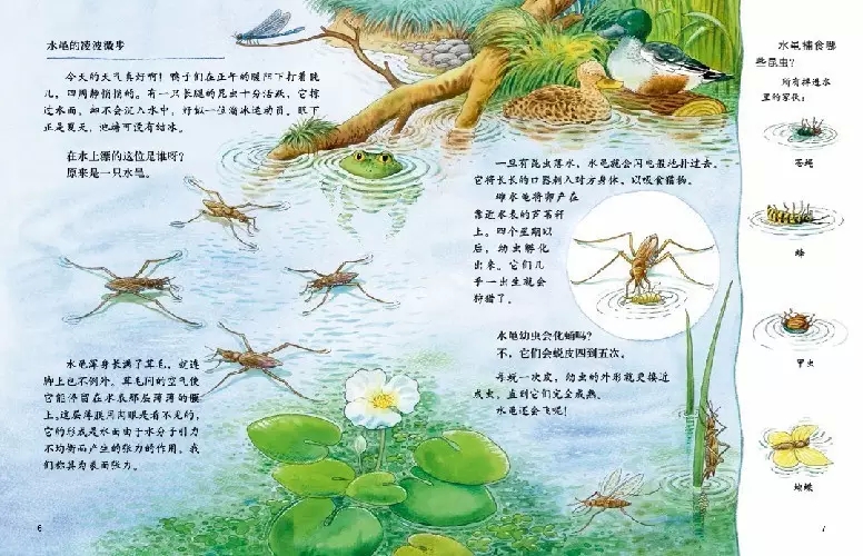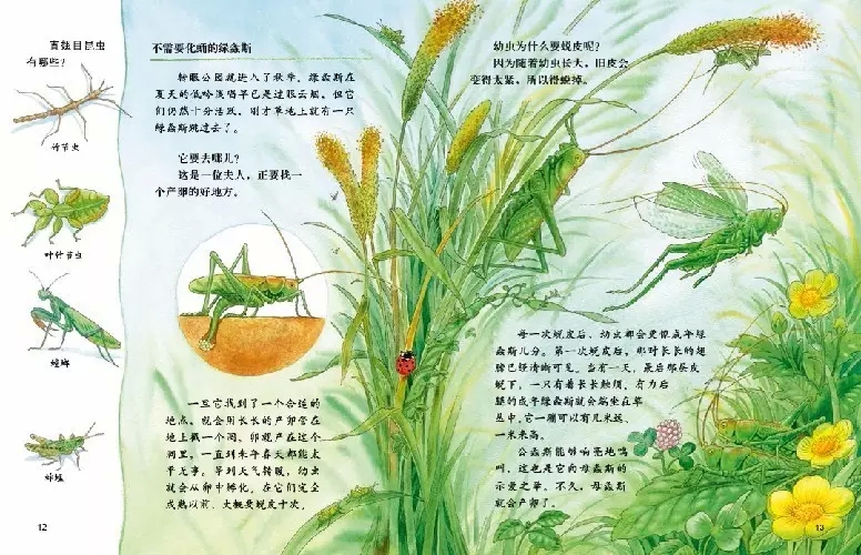 拥有神奇变身魔法的动物还真不少呢,夏天里的歌唱家青蛙,技艺高超的飞行专家帝**蜓,贪吃的大胃王毛毛虫,住在苹果里的神秘房客,布下陷阱狩猎的蚁狮,从大海游向湖泊的旅行者鳗鲡……
