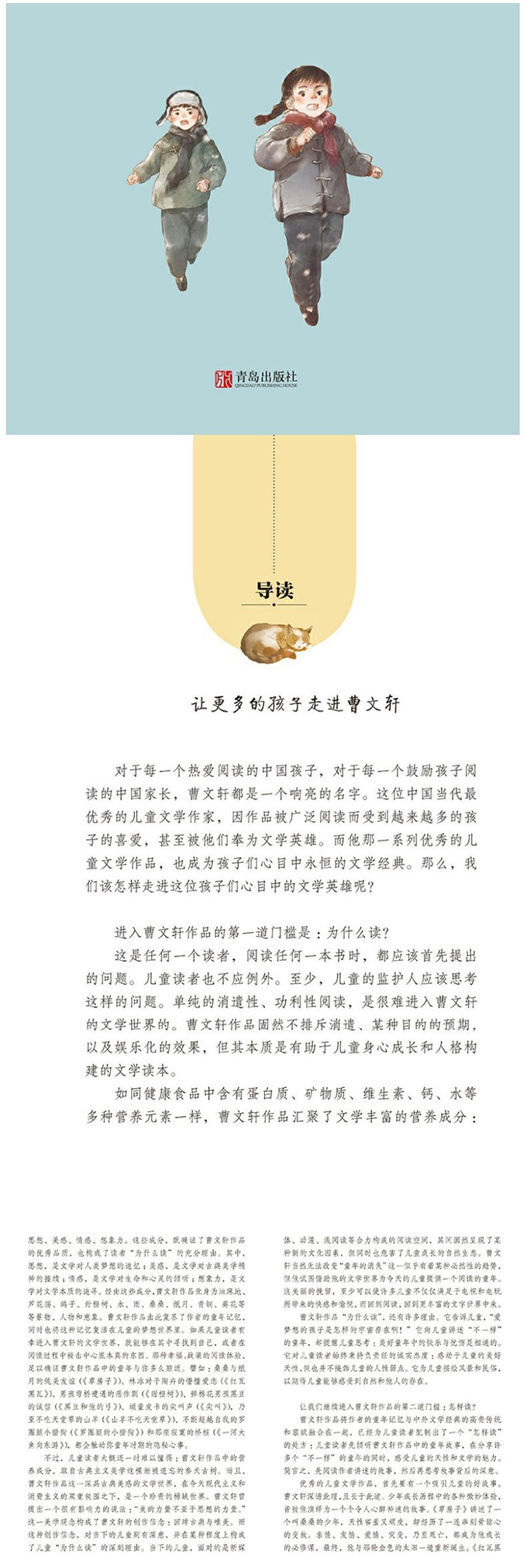 对于每个热爱阅读的中国孩子,对于每个鼓励孩子热爱阅读的中国家长,曹文轩都是一个响亮的名字。这位中国当代最优秀的儿童文学作家,因作品被广泛阅读而受到越来越多的孩子喜欢,甚至被他们奉为文学英雄。而他那一系列的儿童作品,也成为孩子们心中永恒的文学经典。