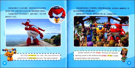 每本书分为两个部分:故事部分与学习部分。故事部分讲述了超级飞侠的神奇旅程,他们帮助孩子学会相信自己、信赖同伴、懂得合作的故事。学习部分为单词学习与世界小百科,帮助小读者巩固读故事时学习到的英语单词和句子,同时补充与故事相关的地理、历史、风俗、趣谈等相关知识,拓宽小读者的视野,让他们了解更多的世界风情。