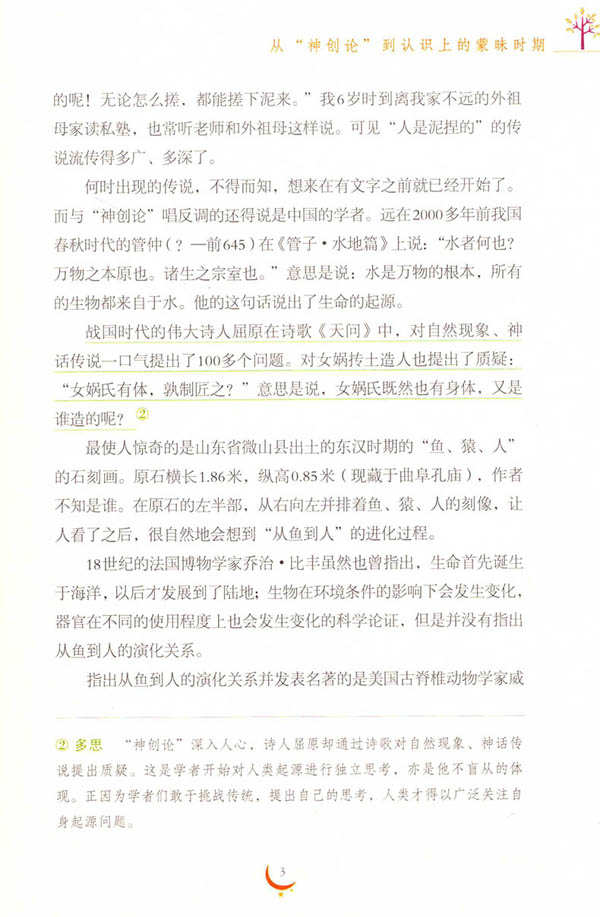 我们在孩提时代,总会缠着父母问“我是从哪里来的”这类问题。当父母告诉你,他们结合才有了你,你是否会继续问,父母又是从哪里来的,父母的父母呢?这确实很伤脑筋。关于人类起源的问题,自古以来众说纷纭。我国著名考古学家贾兰坡为了解答这个问题,专门为青少年创作了这本科普名著——《爷爷的爷爷哪里来》。书中从人类在蒙昧时代一直信奉的“神创论”起笔,讲述中国和西方各自不同的神创造人类的故事。随着人类对自身认识的加深,“人猿同祖”的观念逐渐深入人心。然而这一观点从出现到被世人接受经历了漫长的过程。贾兰坡以及古人类研究所的同事们为了彻底弄清楚人类起源的时间、地点,展开了艰辛的发掘工作。期间,周口店遗址的发掘、北京人头骨的出土,震惊世界,伴随而来的一场场学术争论也将古人类研究学科推向了一个更高的台阶。