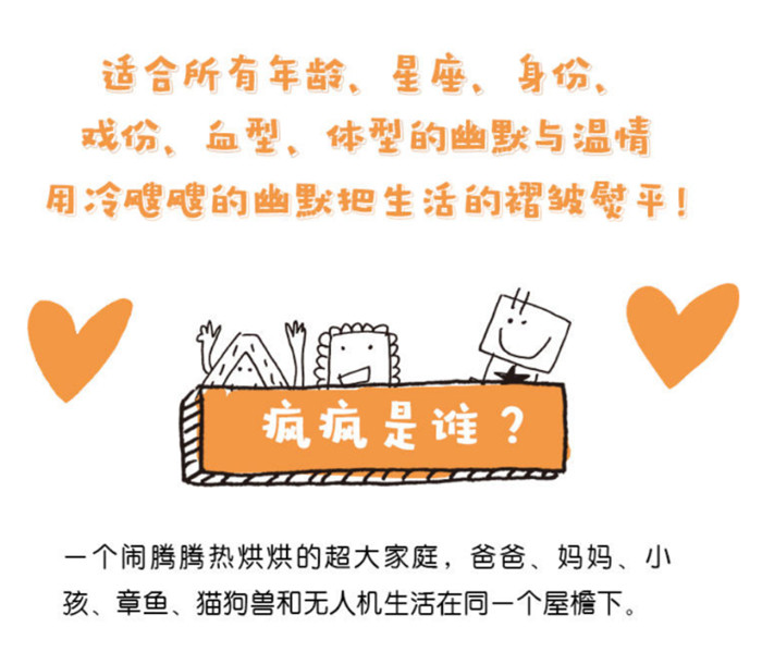 一个不单只有四个孩子的家庭:开朗又充满爱心的爸爸和妈妈,尽其所能教导孩子正面且正确的事物和行为,但孩子的天真回应,让小事变大事,弄得全家天翻地覆,趣事一箩箩,满载矛盾和快乐;可是,家中的小小事故,小小麻烦,又何足介怀,保持开心乐观就是了。爸爸和妈妈是家庭的核心,看着他们回应小朋友的正面方法,对小朋友成长影响最深。作者以小朋友涂鸦的手法进行创作,像是小朋友自言自语的涂鸦日记簿。