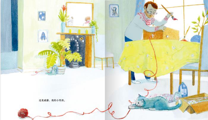 这本书讲述的是一个小女孩和爸爸的故事。她“照顾”爸爸起床,为爸爸做早饭,带爸爸出去锻炼,跟爸爸一块购物,做家务,安慰“摔倒”的爸爸,和爸爸讨论梦想……这本图画书以小女孩的口吻在讲述自己“照顾”爸爸的故事,实则是调皮的小女孩帮倒忙,尽自己“努力”去照顾爸爸,而爸爸则手忙脚乱地去应付女儿的“照顾”。该书弥漫了一种浓浓亲情,还有一种小女孩渴望长大,渴望被当做一个“小大人”的情感。