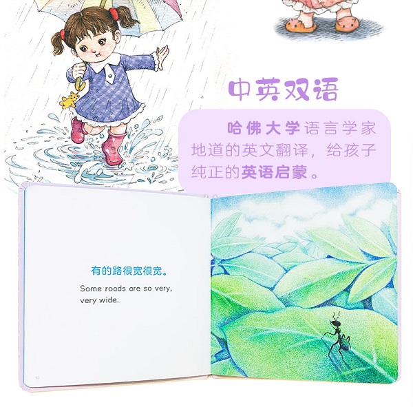 《下雨了吗》是“没想到幼儿哲学启蒙绘本”系列中的一本,这本书中的故事从一只矮小的青蛙开始,到一只高大的长颈鹿结束,这期间发生了好多关于“下雨”的误会。你发现了什么?没错,水滴一次比一次多, 动物一个比一个高。到最后,很多水滴落在长颈鹿的身上,还会有比长颈鹿更高的动物吗?没有了,所以这次真的下雨了。这本书里不仅包含了高矮的认知,在图画中还隐藏了数学的认知。
