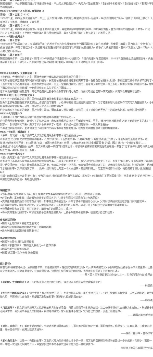 ★精选获奖作品,让孩子感受“浅语的艺术”,套书著绘者曾荣获博洛尼亚国际童书展“年度插画师”、布拉迪斯拉发国际插画展“金苹果奖”、韩国世宗儿童文学奖、韩国文化体育观光部优秀文学图书、韩国儿童启蒙文学奖、韩国学校图书馆协会推荐童书、韩国文化广播公司原创童话大奖、韩国小泉儿童文学奖等多项荣誉,部分篇目入选韩国小学语文课本。