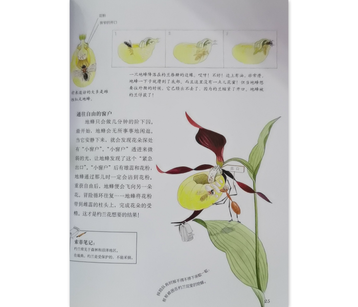 这是一套瑞典著名作家和画家专为儿童创作的自然绘本。你认识多少种花?什么昆虫正在拜访花丛?花朵也会捕虫吗?我们将跟随蚂蚁索菲探秘20余种野花,每种花都有详细的介绍,你还会在书中了解到相关的昆虫。阅读这本书,你会知晓植物的花期,还有昆虫和花朵的互动。例如花会用什么招数来吸引昆虫,或者欺骗这些虫类。书中介绍的花朵包括:款冬、银莲花、报春花、驴蹄草、山茱萸、仲夏花、凤仙花、荨麻、蝴蝶兰花、白睡莲、捕虫草、康乃馨、红三叶草、雏菊、松下兰、野捕虫堇、茅膏草等。