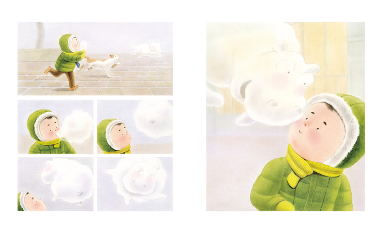 一本享受创造阅读的无字图画书一段生活中*常见的现象引发的奇趣旅程处处洋溢着惊奇、温暖和无穷无尽的想象力冬天到了,你也来哈一口气试试? 你的哈气精灵是什么?