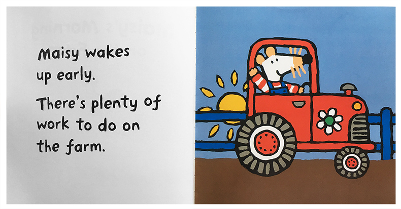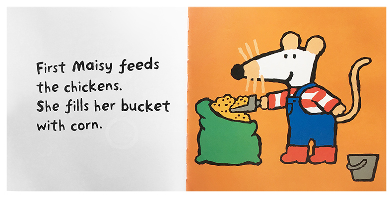 PreSchool-In Doctor Maisy, the little mouse and Nurse Tallulah take care of a sick Panda, "Oh, no. Panda has a fever." When Maisy and Tallulah bump into one another, the nurse has to bandage the doctor's sore nose. In Morning on the Farm, Maisy milks the cow, "Squish squish, squirt squirt"; feeds the pigs and chickens; and then has her own breakfast. Toddlers will be attracted by Cousins's bright, friendly illustrations and simple texts. These two titles are sure to be popular with Maisy fans everywhere.