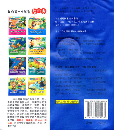 本书是我们专门为幼儿设计的一套安全早教书。采用国际先进的环保塑料,具有无毒、柔软、强韧、耐久以及可泡在水里等特性,它不仅能让宝宝安全无忧地玩,借此满足他们的好奇心,而且它丰富的内容和精美的图片更能吸引宝宝进入美丽的阅读世界。撕不烂、不伤手、不怕水、不怕脏。这是宝宝可以边洗澡、边玩、边看的书!