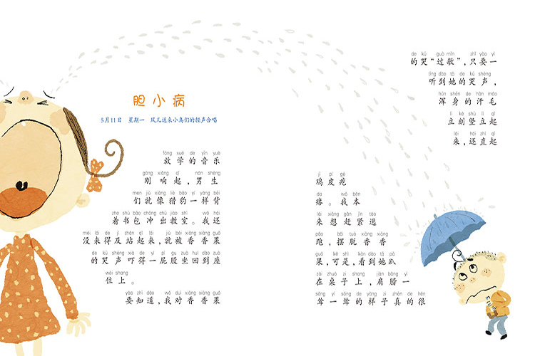 香香果,一个香喷喷的小女孩,胆子却小得看不见。她害怕毛毛虫、臭鞋子,害怕黑,还害怕“毒气”,动不动就启动尖叫模式或大哭模式,常常让同桌朱尔多头疼、抓狂。为了让香香果不再害怕,朱尔多帮助她挑战毛毛虫;带着她站在马路上“勇敢”地大喊大叫;鼓励她参加学校广播员的竞选……其实,害怕是一种成长体验,每个人都有害怕的东西,只要勇于挑战自己,就能战胜害怕。让我们和香香果一起向“害怕”宣战吧!