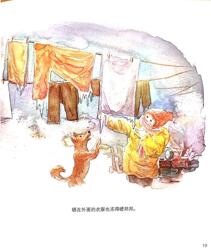 雨落到地面上,被大阳一晒就蒸发成水汽,有的升到上空遇冷液化成做小的雨滴,它们聚集在一起成了云,等到空气托不住时,它们就落下来,视温度的不同而形成雨、雪、冰雹等。这就是水在自然界的循环。其中数云朵最让孩子好奇,因为它们高悬于天际,轻盈美丽、变化多端,因此我们又专门对云作了介绍,并且请紫金山天文台王思潮研究员和南京大学大气科学学院黄安宁教授作了科学指导。至于水的固体形态,乜就是冰,自然界中大概只能在冬季看到。因此我们特别策划了《冻住啦!》这一篇,文字作者鸿羽和图画作者李小光都是北方人,他们对家乡的细致观察与真挚感情,都生动地体现在了笔端。窗花、地窖、雾凇、车轮上的铁链子、凿冰而渔,东北这“嘎嘎冷”却又充满生气的景象想必能令孩子神往。