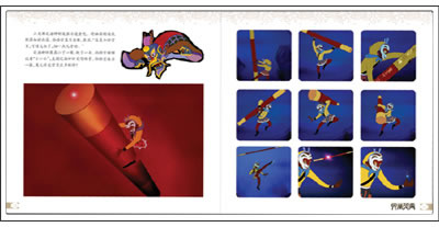 做一本中国式的故事书,又不完全局限于传统连环画的排版,使读者既能体会到中国味的古老风尚,又能符合现代的美术观,这也是策划本书的初衷之一。于是,我们现在看到的版式,便是借鉴了西方绘本版式活泼、言有尽而图意无穷的创作方法,细节处却尽量中国化——刻意的留白、卷轴式的页面、波浪纹的饰边、微暗的底色、图旁的说明文字,让每一个从连环画时代走过来的人都忆起自……