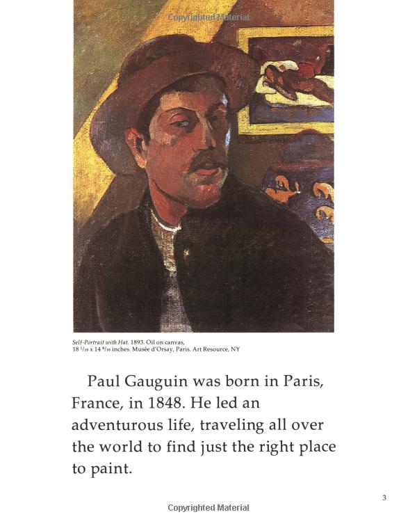 Clever illustrations and story lines, together with full-color reproductions of Paul Gauguin's actual works, give children a light yet realistic overview of this artist's life and style.