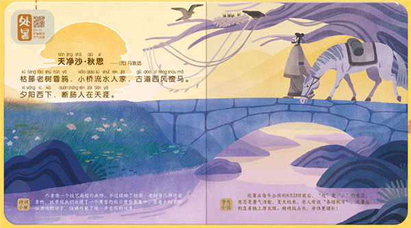 这是一套针对2~4岁低幼儿童的立体认知书,主要通过古诗向小朋友介绍二十四节气。一套共4册,书中的分册包括:《春生》《夏长》《秋收》和《冬藏》,每个季节一个分册,每册介绍6个节气,让小朋友全面了解二十四节气。《秋收》是本套丛书的第一册,主要介绍秋天的节气,包括立秋、处暑、白露、秋分、寒露、霜降这6个节气。每个节气选取一首古诗,充分体现了每个节气的特点。