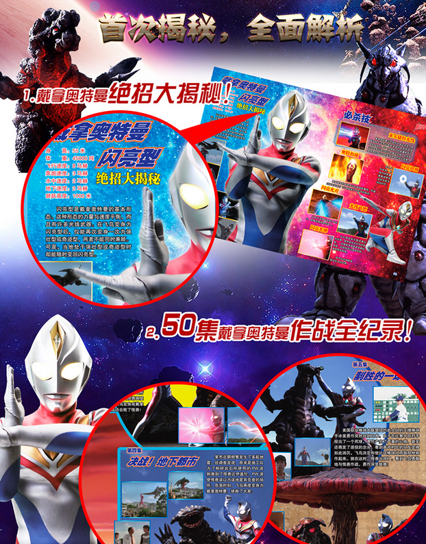 本书为图画故事。以经典奥特战士--戴拿奥特曼剧集为素材,详细介绍了戴拿奥特曼及与之对战的怪兽的战斗力。还包括作战工具介绍和怪兽等宇宙生物的介绍和高清大图、作战能力等。