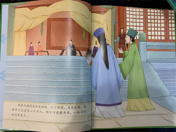 《舌战群儒/悦读约经典·中国名著故事绘本》出自《三国演义》第四十三回,写的是诸葛亮只身随鲁肃过江,游说东吴群臣。时值刘备新败,退守夏口,曹操大军压境,东吴上下主降之风日盛。在此情势下,诸葛亮以其超人的胆识同东吴群儒展开舌战,并以其滔滔辩才使对手一个个皆成“口”下败将,并最终说服了孙权,使孙刘联盟共抗曹操的局面得以形成。