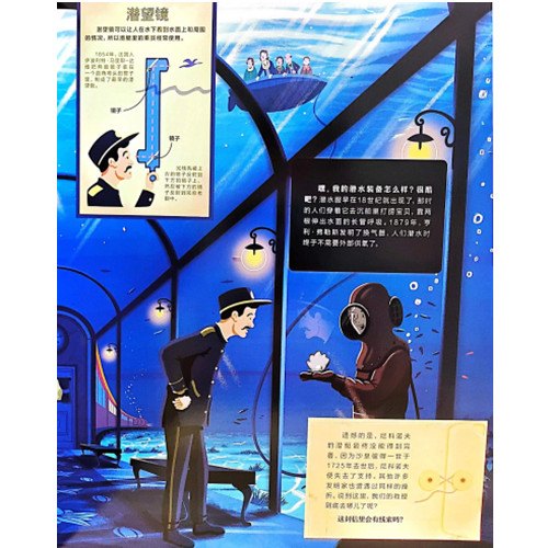 一部穿越时空的纸上动画电影 让孩子读懂人类文明进程 侦探式闯关游戏——嗨到停不下来的“*强大脑”挑战赛 登上“发现号”,你将担负起一项神秘使命:寻找失踪教授的下落,破解谜题,奋勇闯关,确保整个旅程顺利进行。你将挑战达•芬奇镜书、波利比奥斯方阵、摩尔斯电码、栅栏密码、猪圈密码等一系列传奇密码;答案就藏在车票、报纸、电报、列车时刻表中…… 从轮子到喷气机——改变人类历史进程的12次伟大发明 从车轮开始,到自行车的发明,蒸汽机车、蒸汽船的出现,再到汽车、缆车的使用,以及水下潜艇,空中热气球、飞机的诞生……“发现号”可以穿越时空,带我们一起去看看那些具有里程碑意义的交通工具都是怎么发明出来的。不要以为这本书仅仅是介绍交通工具的,其实交通工具的演变,记录着人类发展的进程。从翻开书到合上书,你可以在人类几千年的文明和梦想中穿行,这是一次“时空发现之旅”。 多学科知识融会贯通——美国STEAM读书俱乐部推荐阅读 书中融合了多学科的知识,比如数学、物理、化学、工程、机械、绘图等,绘画也十分精美,是一本很棒的STEAM读物,被美国STEAM读书俱乐部推荐阅读。巴拿马运河的船闸怎样帮助船只通过,浮力怎样帮助潜艇上升和下潜,热气球如何利用空气压强差升空?听起来很厉害吧?在这本书里都能找到答案。 幽默的语言 有趣的细节 ——超过100个知识点轻松GET 本书不仅知识点丰富,还讲述了很多好玩儿的小故事,比如本茨先生不仅研制了世界上*辆汽车,还遭遇了世界上的*场车祸,他在驾驶自己的汽车向人们展示时,一头撞在了墙上;画面中也隐藏着许许多多的有趣小细节,等待着你去发现。 穿越时空的纸上动画电影——带来全新阅读感受 书中的插图美轮美奂,“发现号特快”会带我们穿过郁郁葱葱的德国乡间小路,乘坐蒸汽机车在英格兰的茫茫大地上飞驰,在美国密西西比河畔享受晚风轻抚,去法国凡尔赛宫观看壮观的热气球实验……很多图画都是根据真实的历史图片进行创作的,既真实还原了历史,对比来看也非常有趣。