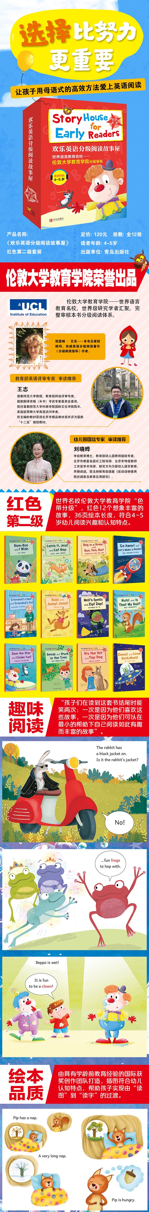 《欢乐英语分级阅读故事屋》系列图书为版权引进图书,以伦敦大学教育学院的阅读分级系统为设计基础,全套图书共10个分级(总计98本),阅读难度逐级增大,符合儿童阅读习惯,让孩子轻松实现从倾听者到阅读者的转变。故事贴近生活并充满趣味性,在激发儿童想象力、逐步提升阅读能力的同时让孩子热爱生活、热爱阅读。英语是一套精细而庞杂的体系。字母、单词之多,常常令幼儿望而生畏。而从英文故事阅读入手,以阅读促学习,在语言学习的黄金期培养英语思维,却可达到柳暗花明的效果。《欢乐英语分级阅读故事屋·红色(第二级)》为孩子们准备了12个原版故事,语句幽默而富有韵律,循序渐进读完它,便可掌握打开英语世界的钥匙。