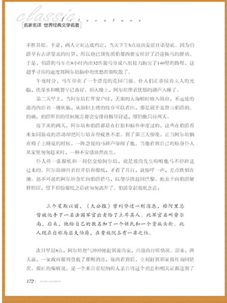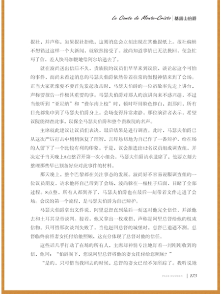 《基督山伯爵》是通俗历史小说,法国著名作家大仲马(1802-1870)的代表作。故事讲述19世纪法国皇帝拿破仑“百日王朝”时期,法老号大副爱德蒙·邓蒂斯受船长委托,为拿破仑党人送了一封信,遭到两个卑鄙小人和法官的陷害,被打入黑牢。狱友法利亚神甫向他传授各种知识,并在临终前把埋于基督山岛上的一批宝藏的秘密告诉了他。唐泰斯越狱后找到了宝藏,成为巨富,从此化名基督山伯爵(水手森巴),经过精心策划,报答了恩人,惩罚了仇人。充满传奇色彩,奇特新颖,引人入胜。