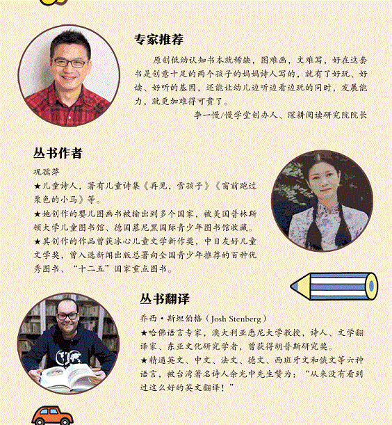 本书的目标读者是0—3岁婴幼儿。本书从0—3岁宝宝的小视角来描绘精彩的大世界,以富有韵律、诗一样的语言带领宝宝认识圆形,以及盘子、铁环、皮球等物体,以出人意料的画面激发宝宝无限的想象,让宝宝在亲子阅读中体验到丰富的乐趣。