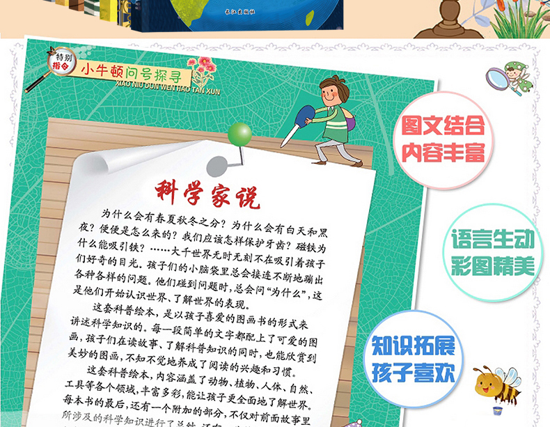 为什么会有春夏秋冬之分?为什么会有白天和黑夜?便便是怎么来的?我们应该怎样保护牙齿?磁铁为什么能吸引铁?……大千世界无时无刻不在吸引着孩子们好奇的目光。 孙静编写的《去旅行啦》是以孩子*喜爱的图画书的形式来讲述科学知识的。每一段简单的文字都配上了可爱的图画,孩子们在读故事、了解科普知识的同时,也能欣赏到美妙的图画,不知不觉地养成了阅读的兴趣和习惯。
